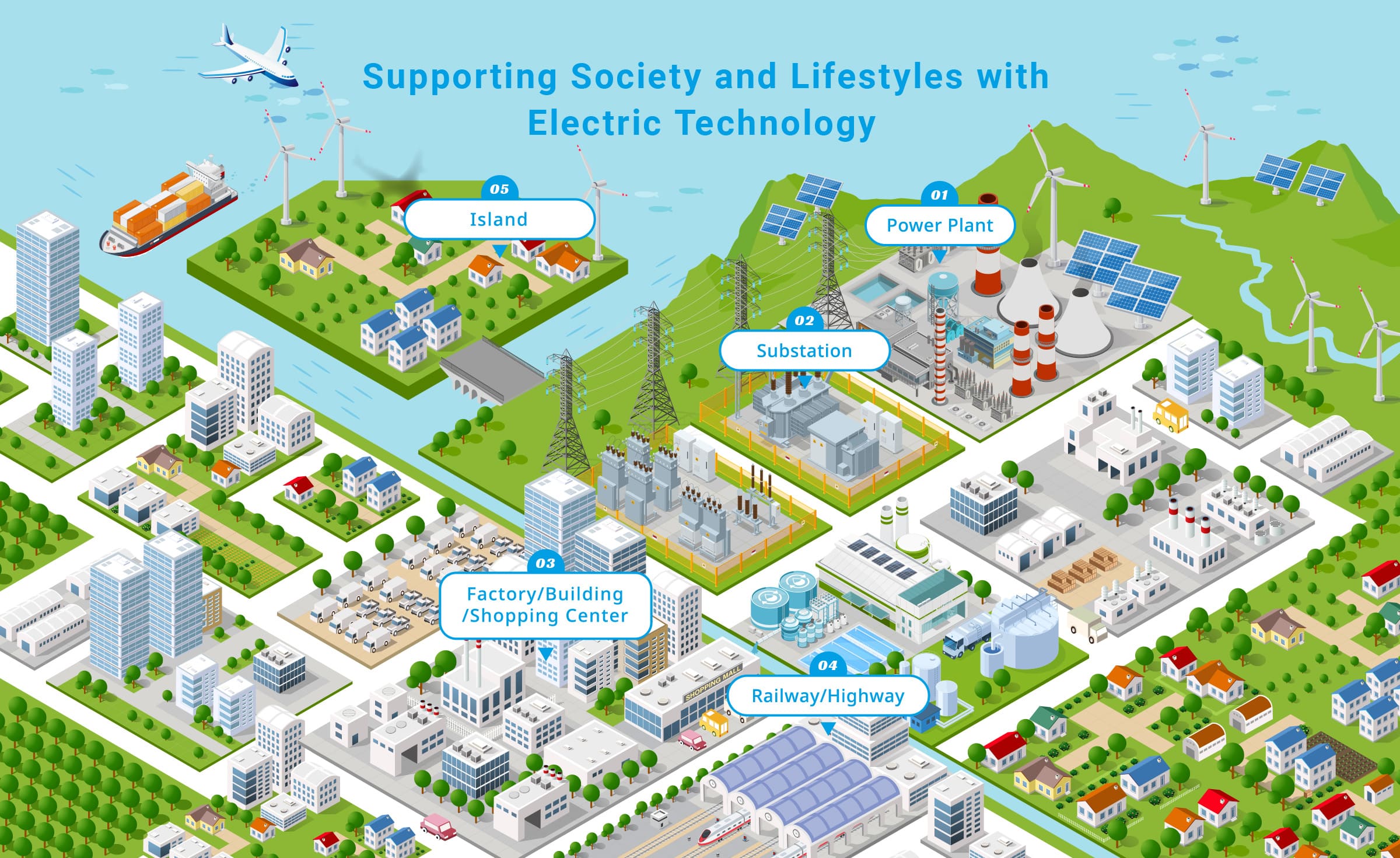 We manufacture various kinds electric power equipment required for a safe and stable power supply and provide supervisory control systems for efficient operation management and effective energy use, as well as a wide range of solutions for the use of renewable energy.